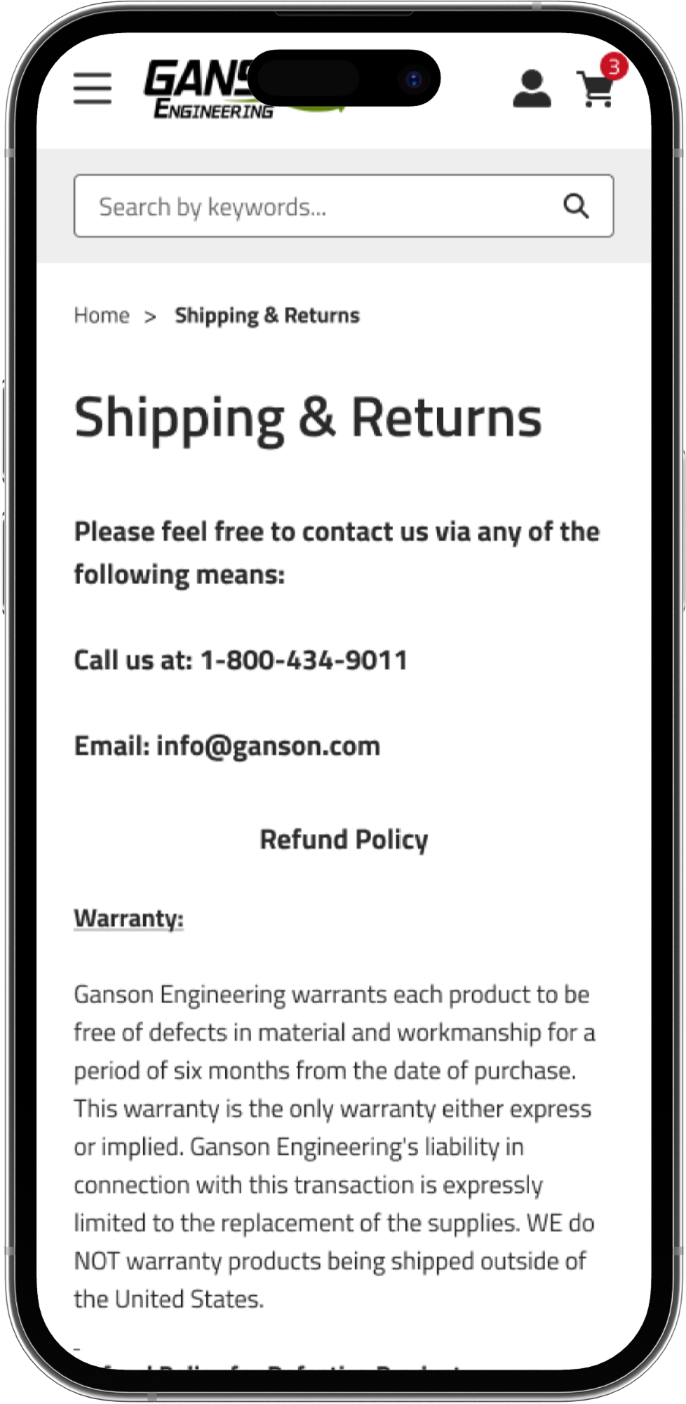 The old Ganson Engineering site had major usability issues — users struggled to navigate the large product catalog, the visual identity felt outdated, and analytics showed many product views but very few checkouts. Through discovery sessions, we uncovered core problems like an inconsistent design system, unclear pathways to products, and friction during checkout.